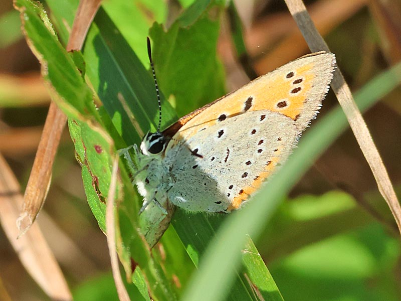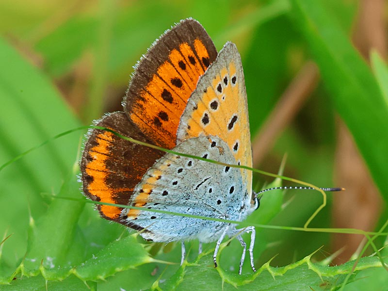 | Ähnliche Arten: | Prinzipiell besteht Verwechslungsgefahr mit andern Feuerfalterarten (Kleiner Feuerfalter, Dukaten- Feuerfalter, Violetter Feuerfalter). Die Unterseite ermöglicht die Unterscheidung am sichersten. |