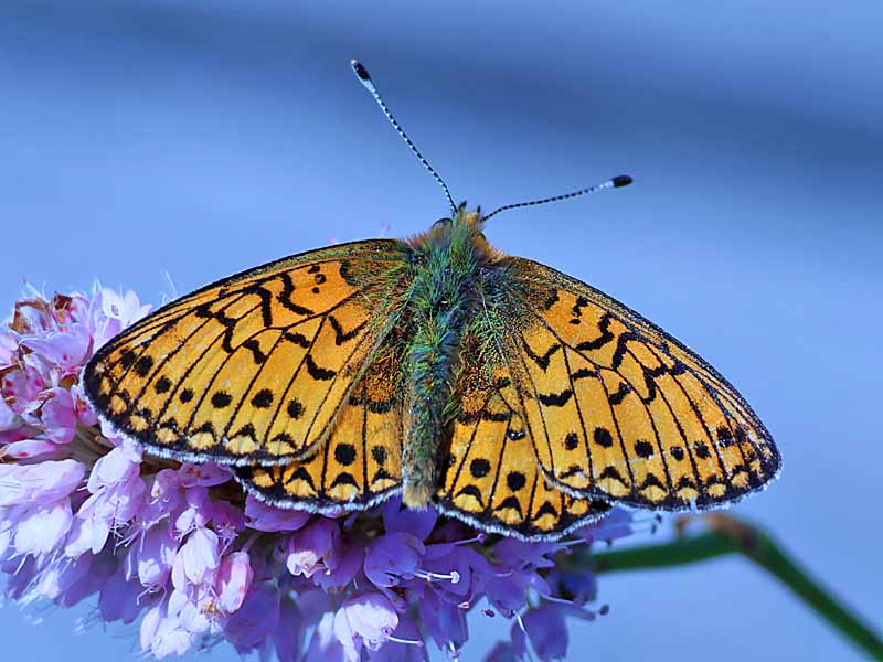 | Ähnliche Arten: | Perlmutterfalter im Frühsommer auf feuchten Wiesen mit Wiesen-Knöterich deuten stets auf diese Art oder den Mädesüß-Perlmuttfalter hin. Die Flugzeit der letzteren Art beginnt 1-2 Wochen später. Die Betrachtung der Flügelunterseite schafft sofort Klarheit! |