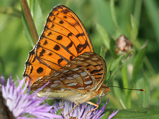 Ähnliche Arten: | Die Art mit der größten Ähnlichkeit ist der Stiefmütterchen-Perlmuttfalter (Argynnis niobe), von der Größe her kann die Art auch mit dem Großen Perlmuttfalter oder mit dem Weibchen des Kaisermantels (mit allerdings völlig verschiedener Unterseite!) verwechselt werden. |