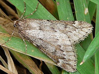 Bei der typischen Sitzposition des Männchens sind die Vorderflügel - meist noch mehr als auf dem Bild von Erich Pitsch - überkreuzt. Die Weibchen der Art sind vollständig flügellos. |