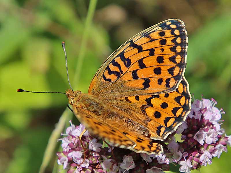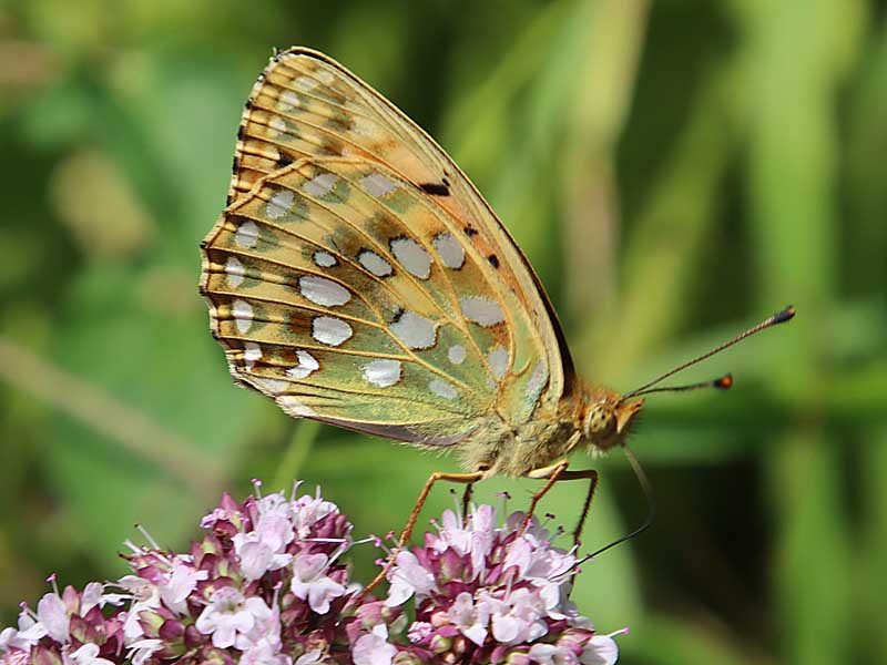 Ähnliche Arten: | Von der Oberseite her besteht Verwechslungsgefahr mit dem Feurigen Perlmuttfalter, dem Mittleren Perlmuttfalter, aber auch mit dem weiblichen Kaisermantel. Weibliche Falter sind oft dunkelgrün übergossen, das erklärt den englischen Namen. |