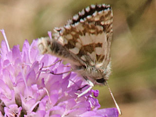 | D, Schwäbische Alb, Machtolsheim, Langes Tal, 18.6.2006. Die Bestimmung erfolgte (mit der für Arten der Gattung Pyrgus unvermeidlichen kleinen Restunsicherheit, also besser als Pyrgus cf. alveus (trebevicensis) bezeichnet.) im lepiforum . |