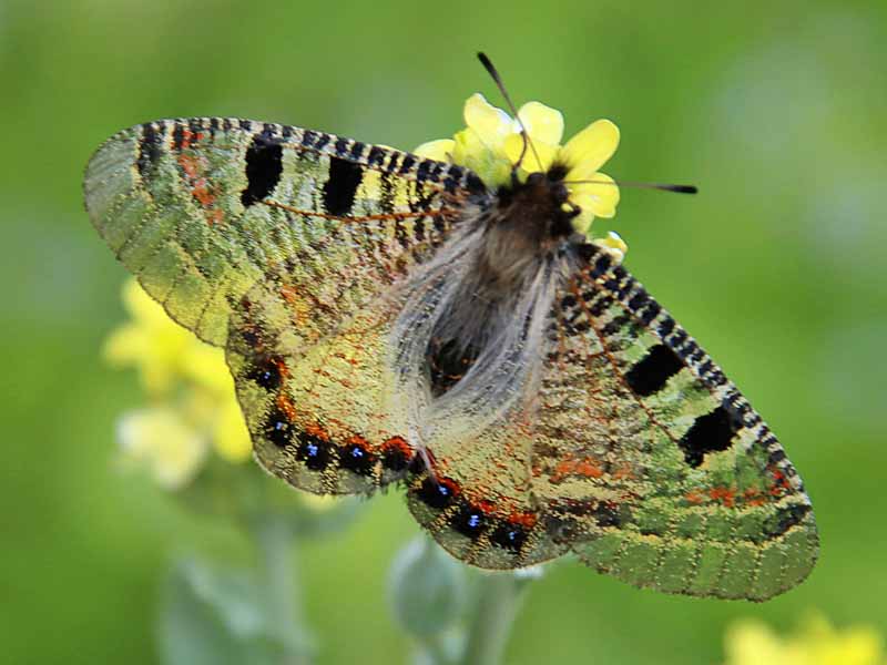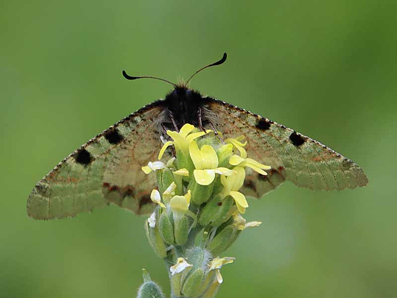Die blaugrünen Eier des Osterluzei-Apollos (oben links) unterscheiden