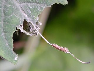 Jungraupe Mitte August Bild2: Hibernaculum (rechts unten) neben Fraßbild (Annette v. Scholley-Pfab) Bild3: Hibernaculum mit Räupchen (Annette v. Scholley-Pfab) Bild4: Raupe im Frühjahr nach Verlassen des Hibernaculums (Annette v. Scholley-Pfab) Bild5: Jungraupe 1 Woche nach Verlassen des Überwinterungsgespinsts Bild6: Vorletztes Raupenstadium Bild7: Hibernaculum Bild8: Hibernaculum mit Räupchen Bild9: Jungraupe, Fraßbild Bild10: Jungraupe Mitte August mit typischem Fraßbild an Roter Heckenkirsche (Lonicera xylosteum) Bild11: Jungraupe (D, BW, Reichenbach/Fils, 3.9.2010) Bild12: Raupe in Überwinterungsgespinst Bild13: Überwinterndes Räupchen aus Hibernarium (D, Schwäbische Alb, Blaubeuren, 26.1.2008) Bild14: Überwinterndes Räupchen aus Hibernarium (D, BW, Bissingen/Teck, 7.2.2011) Bild15: Jungraupe im noch frischen Überwinterungsgespinst (D, BW, Kohlberg/Hörnle, 5.9.2010) Bild16: Jungraupe (D, BW, Bad Urach-Hengen, 19.8.2010) |