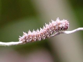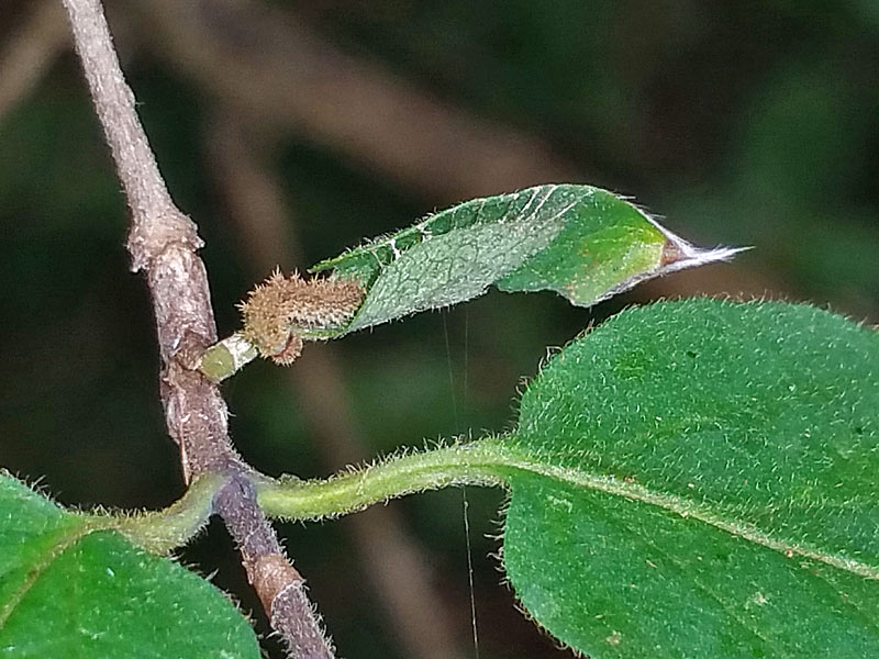 Überwinterndes Räupchen beim Verlassen des Hiberbariums |