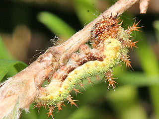 Oben : Halberwachsene Raupe Oben links : Jungraupe nach Überwinterung jetzt typisch grün Links : Fast erwachsene Raupe Weiteres Raupenbild hier ! |