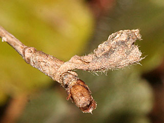 Oben : Überwinterungsgespinst (D, BW, Bissingen/Teck, 7.2.2011) Oben links : Überwinterungsgespinst (Hibernarium) mit überwinterndem Räupchen (D, Schwäbische Alb, Blaubeuren, 26.1.2008) Links : Überwinterungsgespinst (D, BW, Bissingen/Teck, 7.2.2011) |
