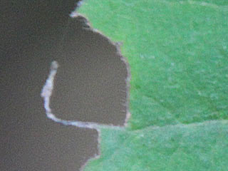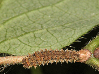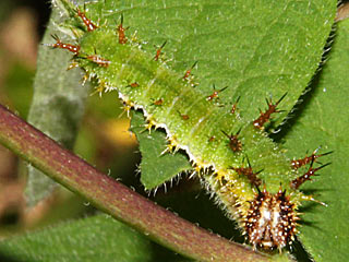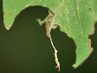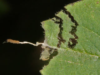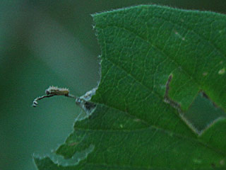 Urach, 19.5.2010) Oben links : Jungraupe vor Überwinterung (D, BW, Bissingen/Teck, 22.8.2010) Links : Auf diesem Bild sind gleich 3 Jungraupen mit dem typischen Fraßbild erkennbar - unten links, oben rechts und Mitte links (D, BW, Bissingen/Teck, 22.8.2010) Weitere Bilder hierzu : Bild1 , Bild2 , Bild3 |