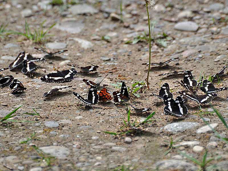 an (D, Niedernberg bei Aschaffenburg, 19.9.2010, Walter Mark) Oben links : Falter auf überfahrenem Frosch Links : Auch hier saugen Falter an einem überfahrenen Frosch - typisch für Eisvögel und Schillerfalter |