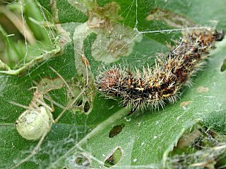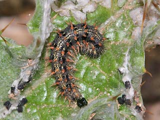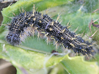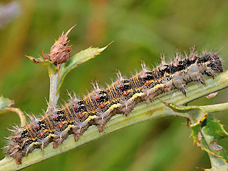 Ei des Distelfalters Bild2: Raupe von Spinne erlegt Bild3: Jungraupe Bild4: Halberwachsene Raupe Bild5: Erwachsene Raupe - weitere Farbvariante Bild6: Gespinst auf Distel Bild7: Gespinst auf Brennnessel Bild8: Oberseite des Falters Bild9: Oberseite des Falters Bild10: Oberseite des Falters Bild11: Oberseite des Falters Bild12: Oberseite des Falters Bild13: Ober-/Unterseite des Falters Bild14: Ober-/Unterseite des Falters Bild15: Erwachsene Raupe Bild16: Erwachsene Raupe Bild17: Erwachsene Raupe (Bild: Stephan Munsch) Bild18: Erwachsene Raupe (Bild: Ruth Zohlen) Bild19: Erwachsene Raupe Bild20: Fast erwachsene Raupe Bild21: Fast erwachsene Raupe Bild22: Halberwachsene Raupe Bild23: Halberwachsene Raupe Bild24: Erwachsene Raupe |