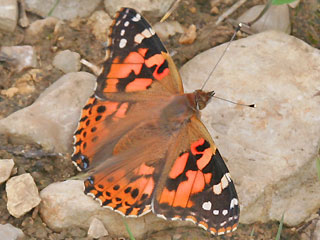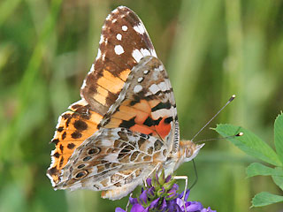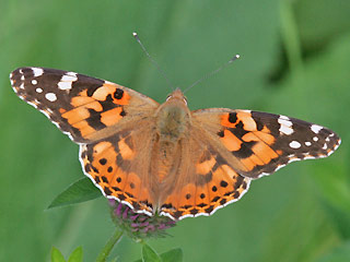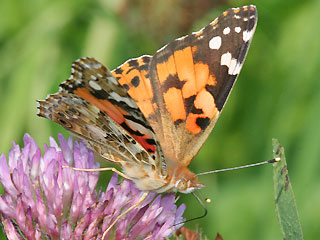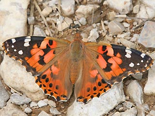 Verbreitung/ Biotop/ Flugzeit: | Dieser Wanderfalter kann überall vorkommen. Er wandert frühestens ab April bei uns ein, ab Juni sieht man wieder frische Falter. Letzte Falter kann man noch im September antreffen. |