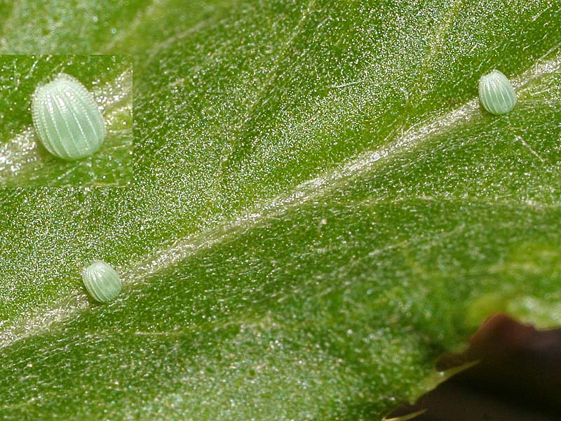 Ei des Distelfalters Weitere Bilder von Ei , Eiräupchen und halberwachsener Raupe |