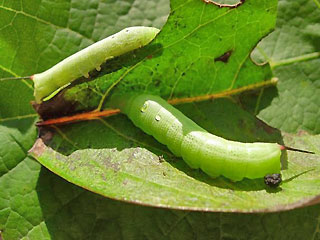 Raupenbild von Gerd Hochleitner Bild2: Falter von Uwe Kauz Bild3: Halberwachsene Raupe (grün) (Uwe Kauz) Bild4: Halberwachsene Raupe (graubraun) (Uwe Kauz) Bild5: Junge Raupen (L2?) (Uwe Kauz) Bild6: Puppen (Uwe Kauz) Bild7: Kopf Raupe (Spanien, Mallorca, 1.8.2007, Erna Ehlert) Bild8: Falter von unten (Heidrun Schmidt-Bartl) Bild9: Kopfpartie (Heidrun Schmidt-Bartl) Bild10: Raupe (Helmut Bengsch) |