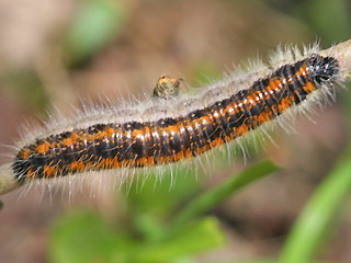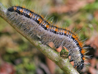 Schlüpfender Falter Bild2: Raupen auf Überwinterungsgespinst von Gert Hillscher Bild3: Falter am Boden saugend von Vincent Kocher Bild4: Falterunterseite von Sybille Przybilla Bild5: Erwachsene Raupe von oben (Zuchtfoto) Bild6: Erwachsene Raupe von Seite (Zuchtfoto) Bild7: Puppe (Zuchtfoto) Bild8: Balzende Falter (Griechenland, Oxinia bei Meteora, 08.06.2006) Bild9: D, Bayern, Vilgertshofen(Issing), 3.6.2007 Mehrere Falter auf einer Blüte Anne Schulz Bild10: Unterseite Südschweden, Prov.Blekinge, Umgenung Kallinge, 3.7.2010 Helga Weickhardt |