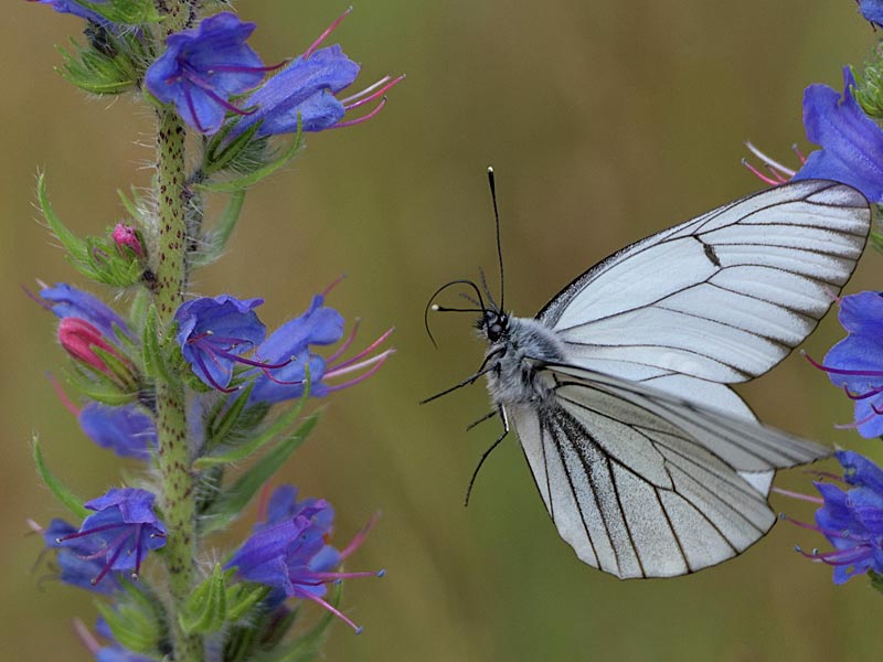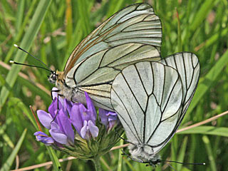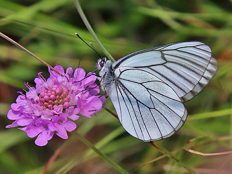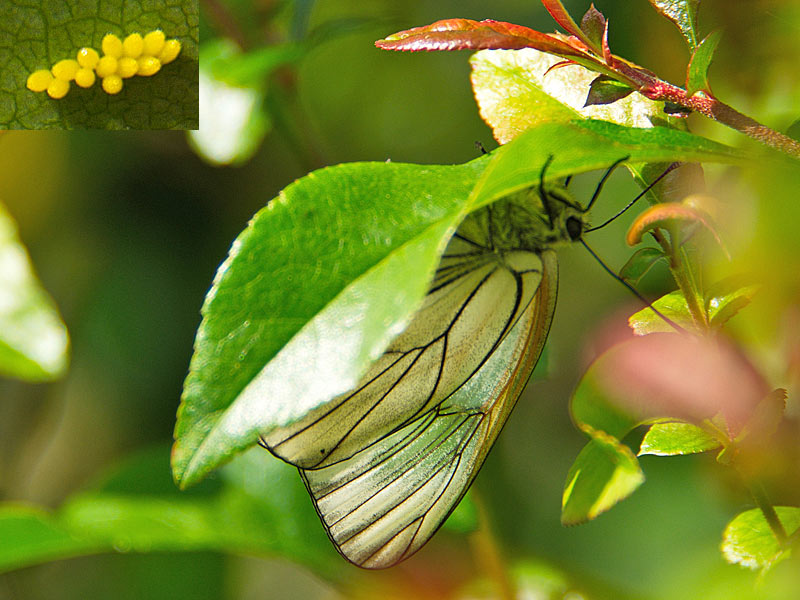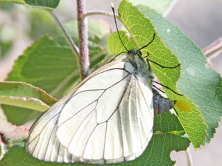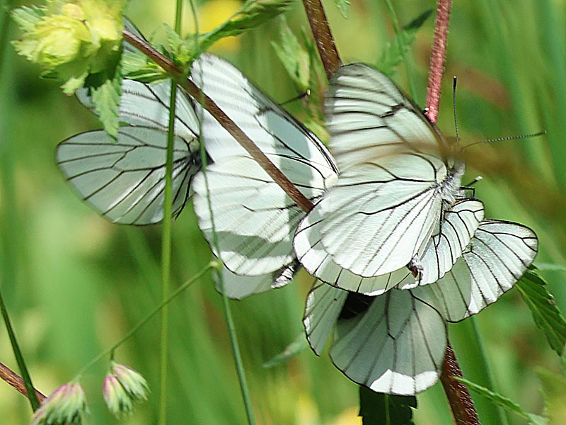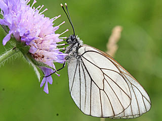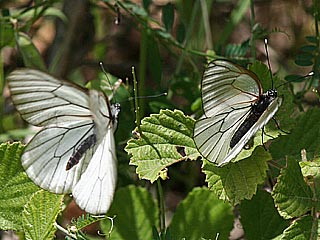 Oben links : Der Baumweißling ist ein großer, weißer Falter, bei dem die Adern besonders deutlich hervortreten. Links : D, NRW, Eifel, Umgebung Monschau, 18.6.2018 |