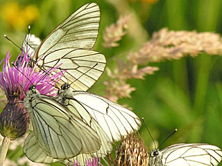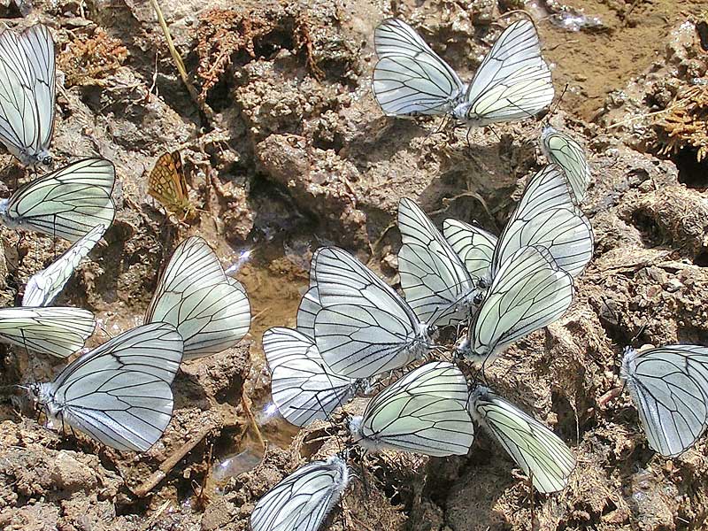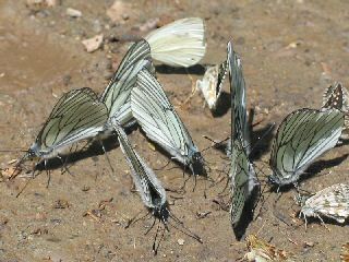 Eine solche Ansammlung von Baumweißlingen fotografierte Erwin Schellig im Juni 2005 am Gardasee. Eine weitere derartige Ansammlung von Falter zeigt dieses Bild von Dr.Gabriele Kohte-Heinrich |