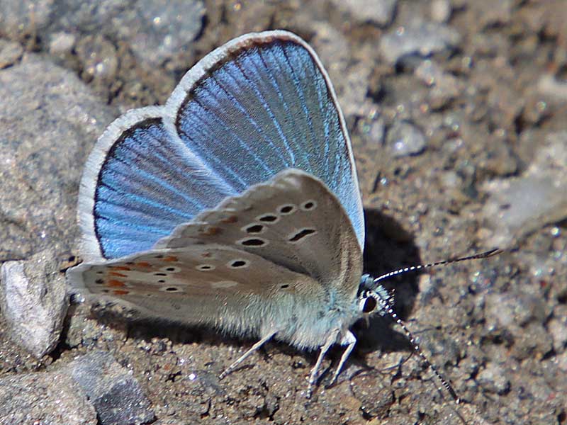 Männchen von oben (Griechenland, Metsovo, Kantara-Pass, 09.06.2006) Bild2 : Männchen von oben (Slowenien) Bild3 : Falter wie Bild2 von unten Bild4 : Männchen Oberseite (Italien, Südtirol, Matschtal, 11.7.2012) Bild5 : Unterseite, gleicher Falter wie Bild4 |