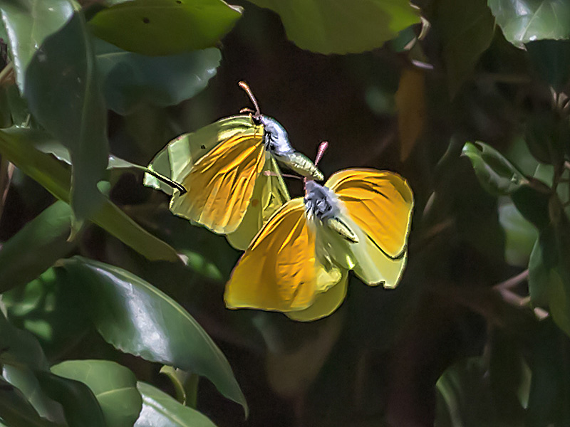 2.9.2011 auf La Gomera (Nationalpark Garajonay) aufgenommen. Bilder (1) u. (2) zeigen dasselbe Männchen - erst im Gegenlicht wird die orange Färbung der Oberseite erkennbar. |