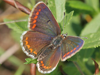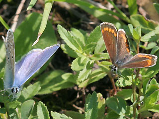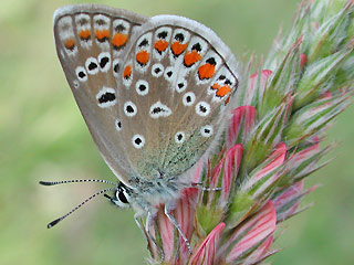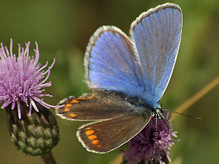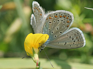 Wissenswertes: | Bei fast allen Bläulingen im engeren Sinne sind die Männchen bläulich, die Weibchen dagegen allenfalls blau übergossen. Deren Färbung geht meist in Richtung braun. |