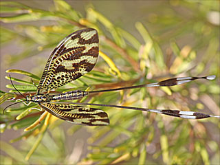 Nemoptera bipennis - eine zu den "Fadenhaften (Nemopteridae) gehörende Art. Spanien, Andalusien, Umgebung Sevilla (Bild Dr.Marcel Hennen ) |