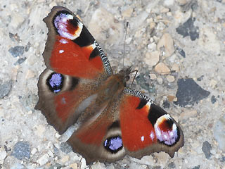 | Verbreitung/ Biotop/ Flugzeit: | Das Tagpfauenauge kann überall vorkommen, bevorzugt sind natürlich blütenreiche, naturnahe Stellen. Der Falter überwintert und fliegt bis Mai oder Juni. Die frischen Falter der 1. Generation findet man ab Juli , in warmen Gegenden entwickelt sich noch eine weitere Generation. |