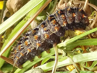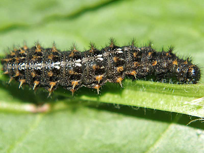 ! Jessica Nebel Links : Raupe nach Überwinterung (D, Sachsen, Coswig, 16.3.07, Bild : Marie Kozak, Bestimmung in lepiforum) |