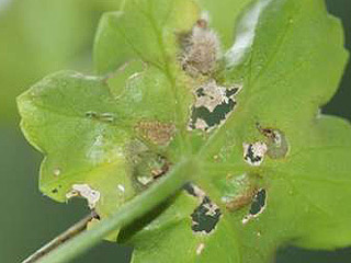 Griechenland, Athen, Spätsommer 2010 Carsten Schmidt | Schadbilder von Carsten Schmidt . Von ihm stammt die folgende Beschreibung : "Die Bilder zeigen, dass die Raupen an den Spitzen der jungen Triebe "einsteigen" und sich dann im Stengel runterfressen. Anscheinend fressen Sie dann irgendwann ein Loch durch die Wand des Stengels um wieder raus zu kommen. Die Spitze der Triebe stirbt dann ab, sie werden schwarz" |