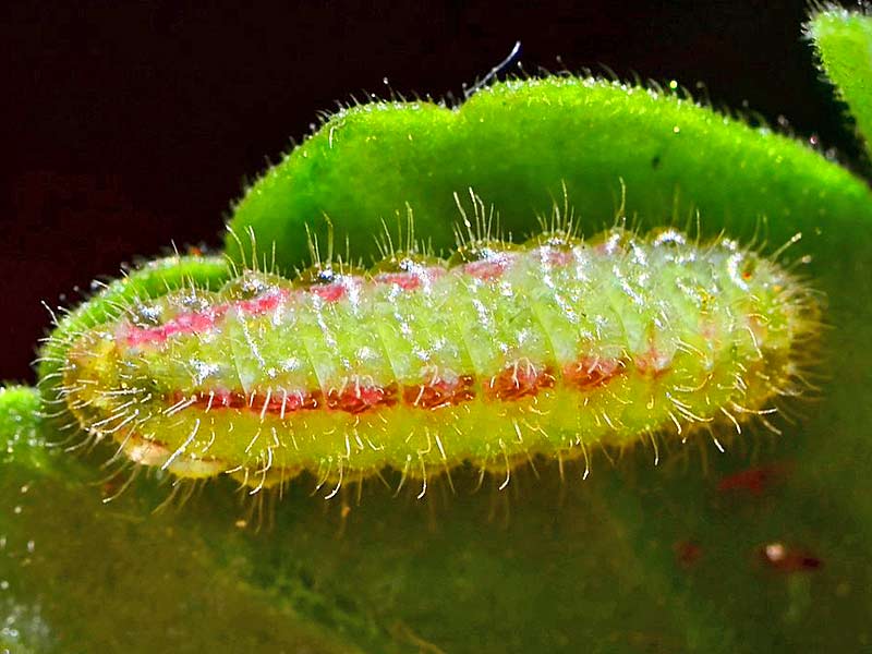 Raupenbild von Marco Pollini (Tessin 2005). Nur die erwachsene Raupe frisst an den Blättern, jüngere dagegen in den Blütenknospen. | Kroatien, Insel Krk, Krk, 13.8.2018 Stjepan Janekovic |