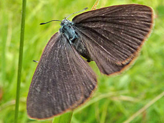 eine Art Sekret. Die männlichen Falter wirken im Flug schwarzblau.