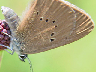 Größe/Häufigkeit: | Kleiner Falter, der selten ist, aber auch in kleinen Wiesenknopfbeständen mit nur wenigen Pflanzen existieren kann. |