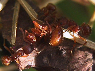von Ameisen in ihre Nester getragen werden und dort überwintern. Die
