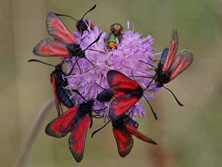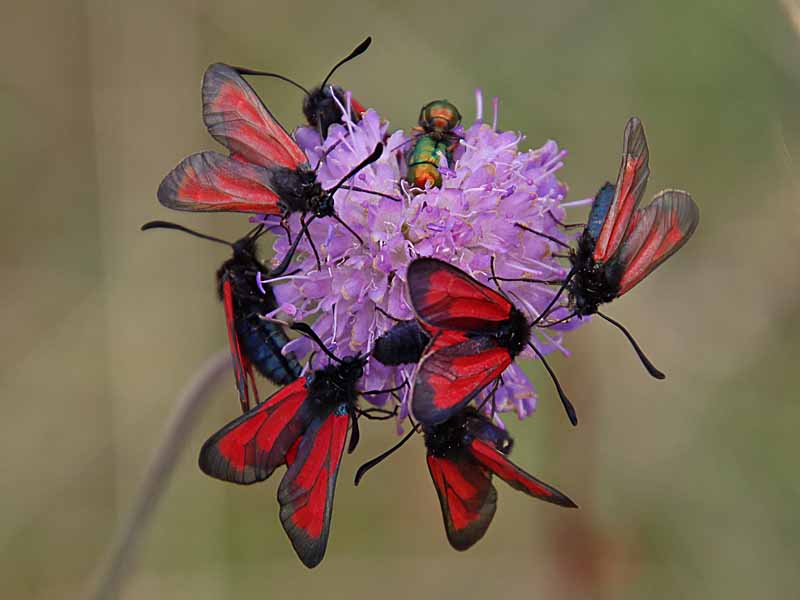 Die 3 Falter links und oben wurden bereits am 28.Mai 2011 fotografiert (D, BW, Schwäbische Alb, Wacholderheide, Neuffen). Die sehr frühe Flugzeit ist ein starkes Indiz für Zygaena minos (die Art ist im Gebiet auch nachgewiesen) |