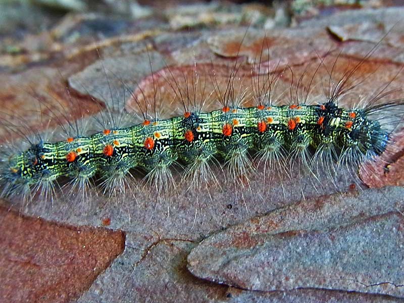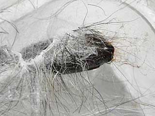 Die 5 Bilder oben und links Stammen aus einer Zucht, welche Helga Schladitz im Frühjahr 2015 (NRW, Umgebung Mönchengladbach) durchgeführt hat Weiteres Raupenbild sowie Puppe im Kokon  |