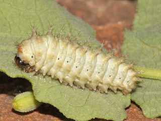 gleiche, inzwischen fast erwachsene Raupe am 13.6.2010. |