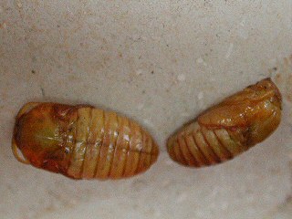 eines weiteren Falters aus der gleichen Zucht. Bild2: Kokon Bild3: 2 Puppen |