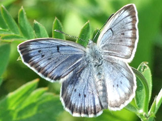 | Ähnliche Arten: | Es besteht Verwechslungsgefahr mit weiteren "Ameisen-Bläulingen", vor allem mit den beiden Arten von Enzian- Ameisen-Bläulingen. Dagegen können der Schwarzfleckige Ameisen-Bläuling und der Dunkle Wiesenknopf-Ameisenbläuling gut unterschieden werden. |