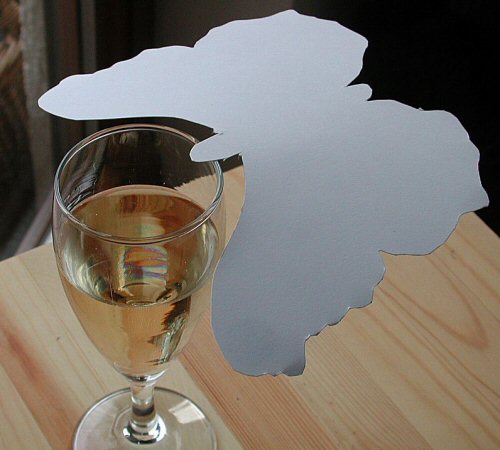 Schwebender Schmetterling / Schwerpunkt | Ein sehr schöner und überraschender Effekt : Man kann einen aus Karton ausgeschnittenen Schmetterling am Schnabel zum Schweben bringen (Bild hier). Theoretischer Hintergrund ist der Begriff "Schwerpunkt", es wird auch gezeigt, wie man experimentell der Schwerpunkt eines Dreiecks und den "Mittelpunkt Deutschlands" finden kann! |