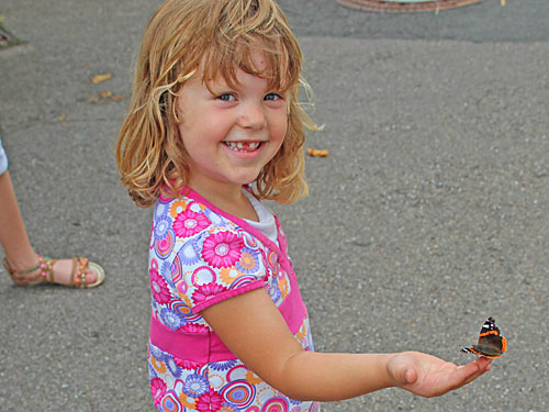 Mädchen mit frisch geschlüpftem Admiral