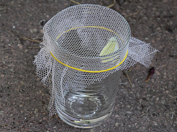 9) Experten kennen natürlich professionelle Methoden zur Abtötung von Faltern, ohne diese zu beschädigen ( z.B. Verbringen in ein Gefäß mit ausreichend Essigäther, usw.) Aber wie soll der Laie vorgehen ? Ich empfehle folgendes Vorgehen : Man verbringt den Falter in ein Glas, das mit Gaze verschlossen ist und stellt dieses mindestens 1 Stunde in den Kühlschrank (eventuell dessen Temperatur auf 3-4 Grad reduzieren), siehe bild1 . Danach sorgt man durch Klopfen dafür, dass der Falter am Boden des Gefäßes liegt und stellt den Behälter mindestens eine halbe Stunde ohne die Gaze ins Gefrierfach des Kühlschranks, siehe bild2 . Auf diese Weise sollte sich das gewünschte Ergebnis einstellen, siehe bild3 |