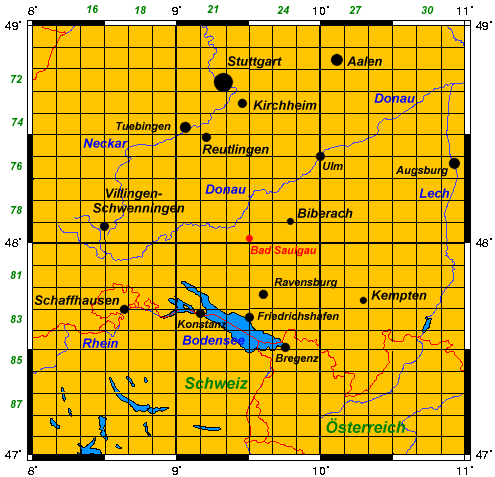 Großen Lautertal (7622). B. Keihl berichtete mir von mindestens 3 Faltern auf der Schwäbischen Alb bei Sigmaringen (7820) |