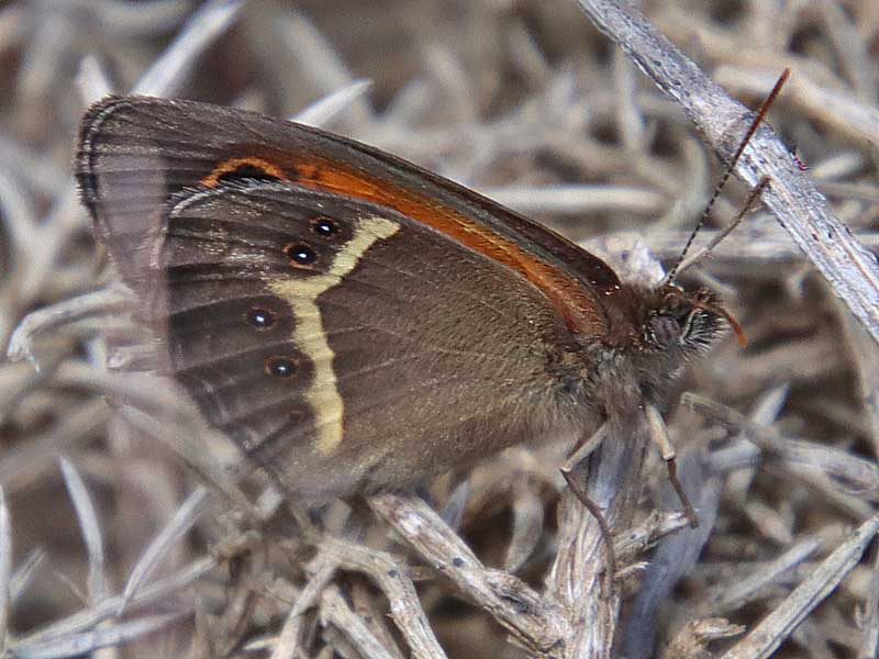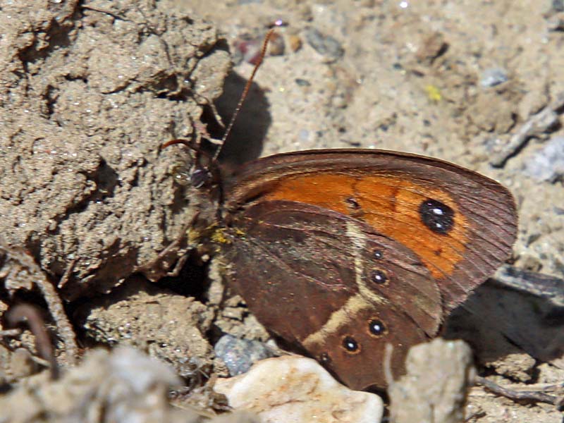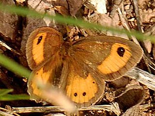 Über die Unterseite ist der Falter eindeutig zu identifizieren. (Südwestliches Portugal, Aljezur, 27.5.2005) | Hier sieht man den Falter zusammen mit einem Großen Ochsenauge (Südwestliches Portugal, Odeceixe, 20.5.2005) |