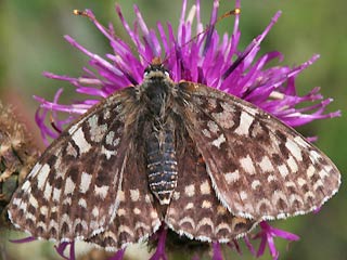 Puppe Bild2: Falter von unten (Schwäbische Alb) Bild3: Männlicher Falter (Schwäbische Alb) Bild4: Weibchen v.o. (Italien, Aostatal, Umg. Ivrea, 28.8.05) 2.Gen. Bild5: Männchen v.o. (Italien, Piemont, Pellicetal, Luzerna San Giovanni, 3.9.05) 2.Gen. Bild6: Raupe, Bild von Priska Limacher (Schweiz, Wallis, Albinen, 17.7.2006) Bild7: Raupe, Bild von Norbert Wilhelm Bild8: Weibchen (Schweiz, Unterengadin, Ardez, 11.8.2006) Bild9: Weibchen Unterseite (Italien, Südtirol, Vinschgau, Latsch, 8.8.2006) Bild10: Paarung ! D, Mosel, Valwig, 10.5.2005, Horst Hergarden |