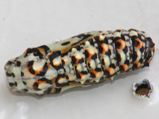 (Raupenfund, Schwäbische Alb, Großes Lautertal) Weitere Bilder aus dieser Zucht : Halberwachsene Raupe , Orginalfutterpflanze , Raupe , Puppe(Seite) , Puppe(oben) |