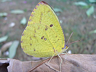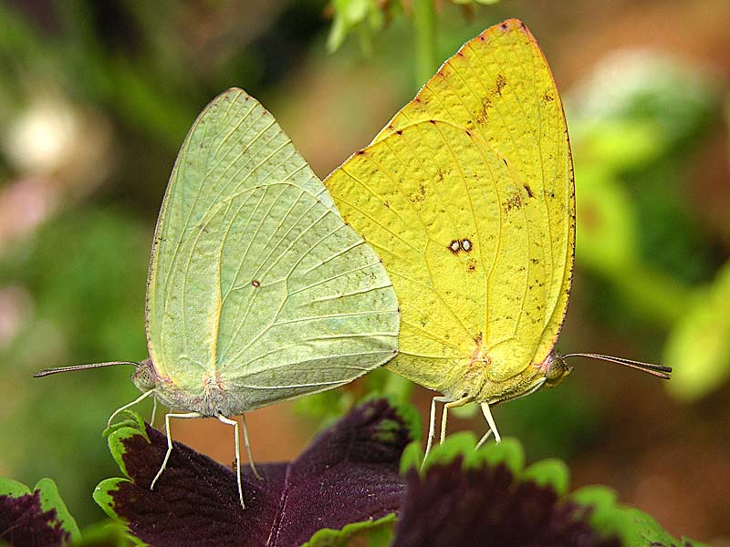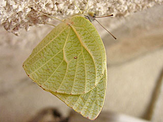 | Wissenswertes: | Unterscheidung der Geschlechter : Umgekehrt wie beim heimischen Zitronenfalter ist bei dieser Art das Männchen blass (grünlich) weiß, das Weibchen meist gelb. Es gibt aber auch weißliche Männchen (f.pyrene) und Weibchen, so dass bei weißlichen Tieren die Geschlechtszuordnung schwierig ist. |