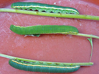 | 3 Raupen (Ägypten, ca.35km nordwestlich Kairo, Zucht Nov./Dez.2009 Gudrun Fetouh ) | |