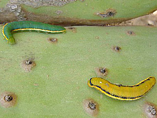 | gelbe und grüne Raupe (Ägypten, ca.35km nordwestlich Kairo, Zucht Nov./Dez.2009 Gudrun Fetouh ) | |