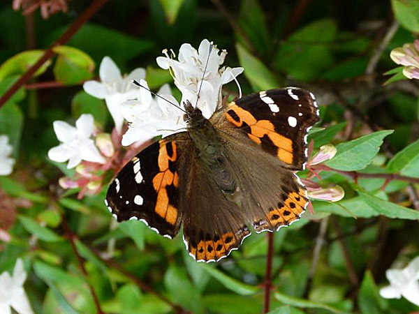 Ähnliche Arten: | Auf den Kanaren und auf Madeira fliegt der sehr ähnliche Kanarische Admiral, der gelegentlich auch als Unterart des Indischen Admirals angesehen wird bzw. wurde. Ebenso besteht eine Ähnlichkeit zum in ganz Europa verbreiteten Admiral . |