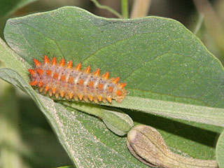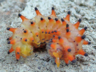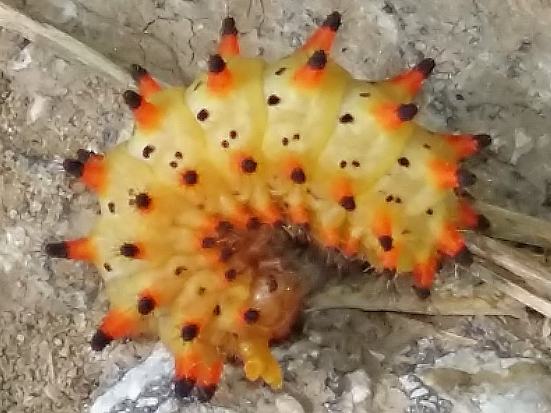 Dieter Haugk Links : Österreich, Pfaffstätten südlich Wien, 18.6.2016 Astrid Pivonka Die Raupe hat die für Ritterfalter (vergleiche Schwalbenschwanz !) typische gelbliche Nackengabe (Osmeterium) ausgestülpft (Mitte unten) |