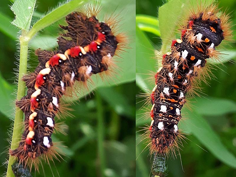 Oben : Puppe - weiteres Puppenbild Oben links : D, BW, Freiburg i.Br. , 15.6.2017 Tobias Häge Links : Halberwachsene Raupe |